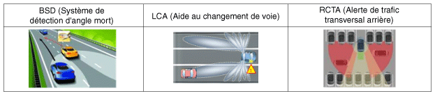 Système de détection d'angle mort (BSD) : Détecte les autres véhicules