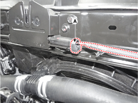 Débranchez le connecteur du loquet inférieur du capot (A).